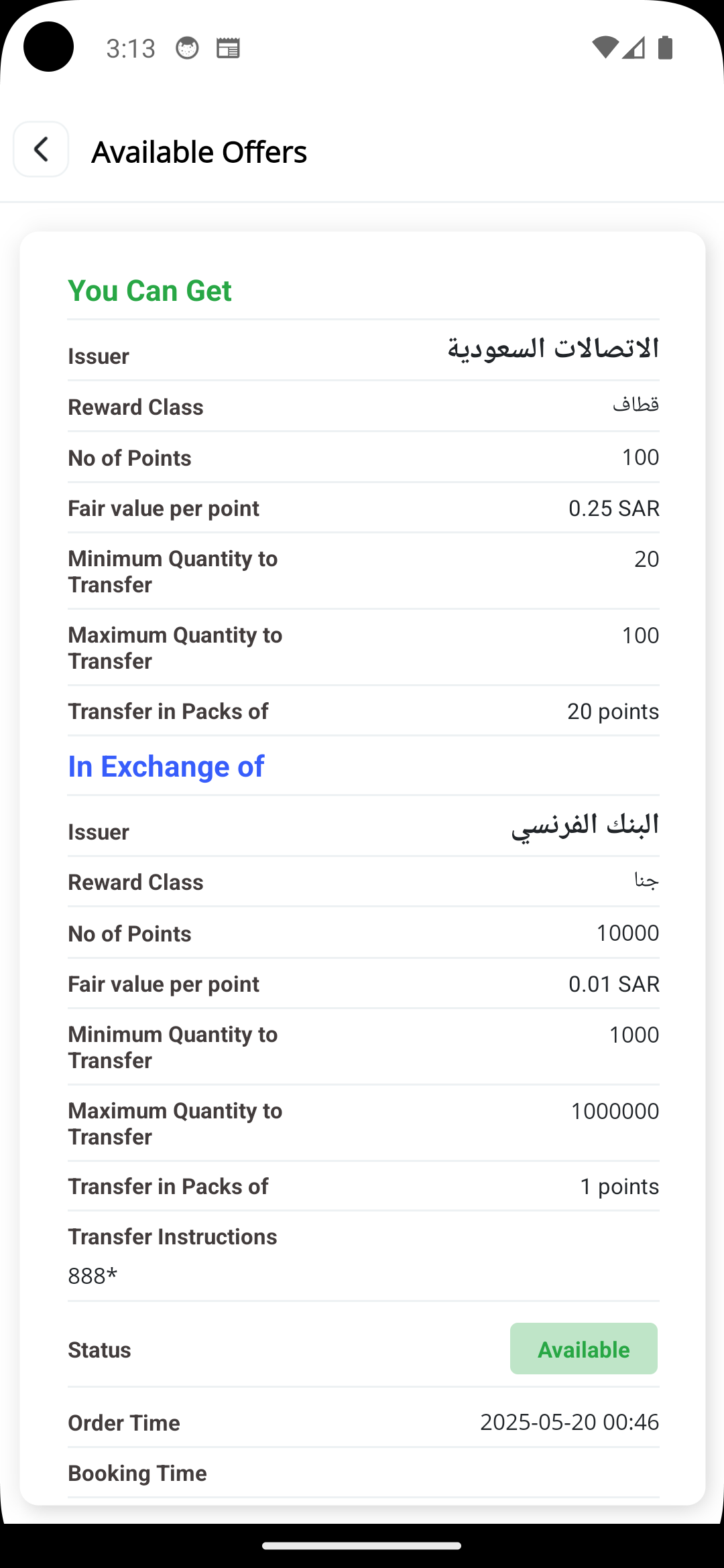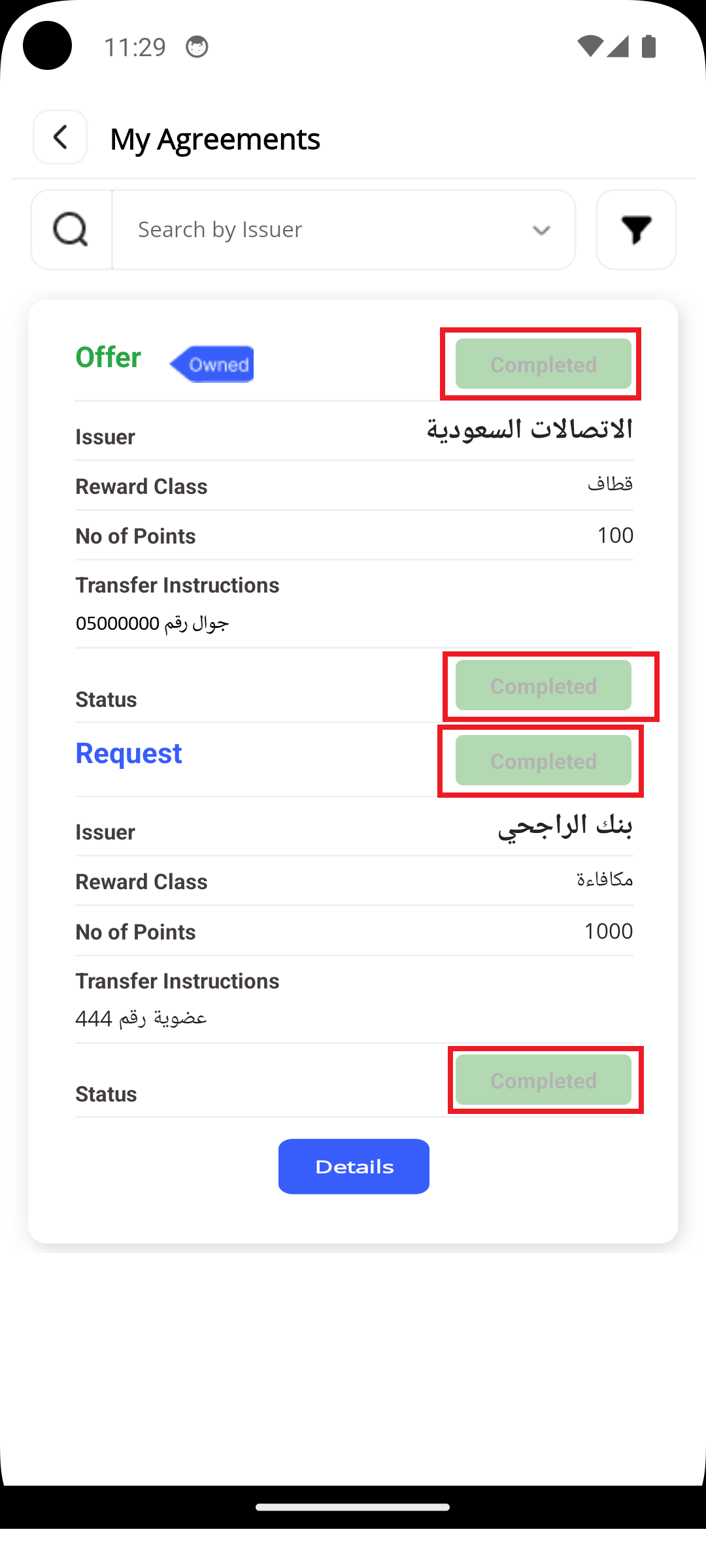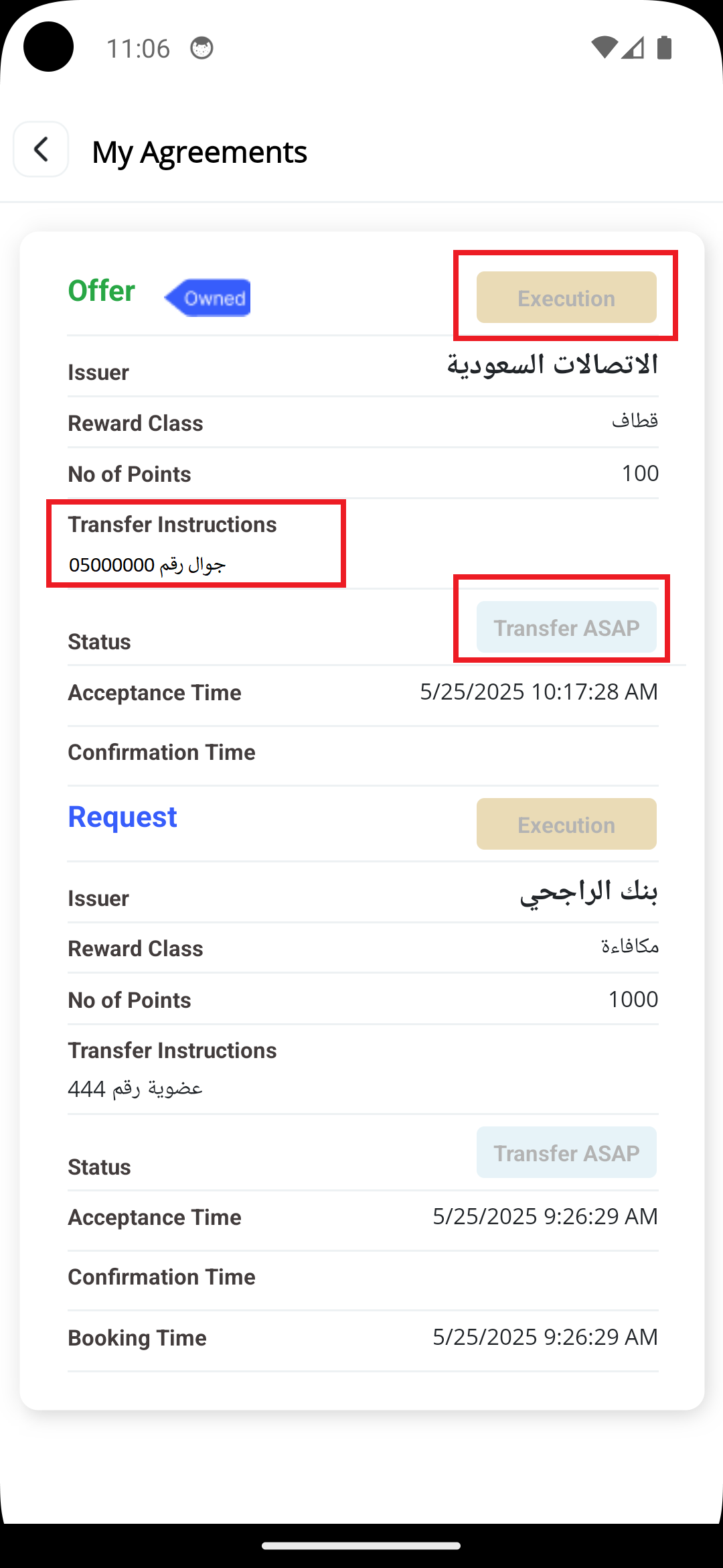 Note: Points should be transfered manually by you and the other party (Offer Owner) via Loyalty Program APP/Website - it is not done by Estbdlha App at this time