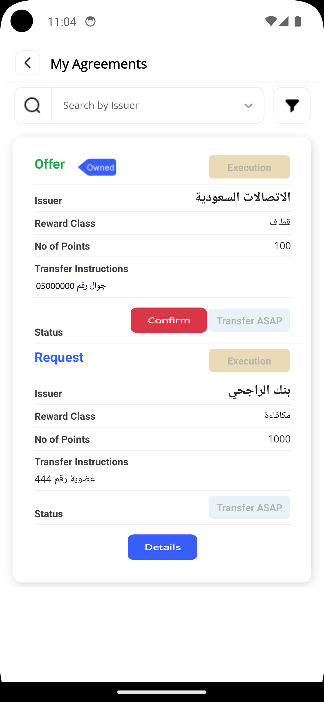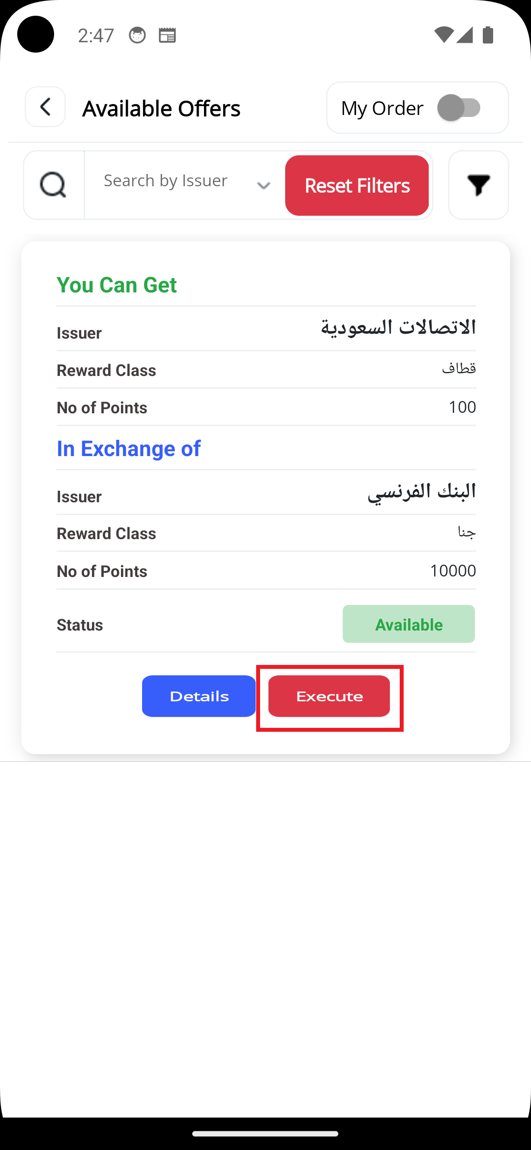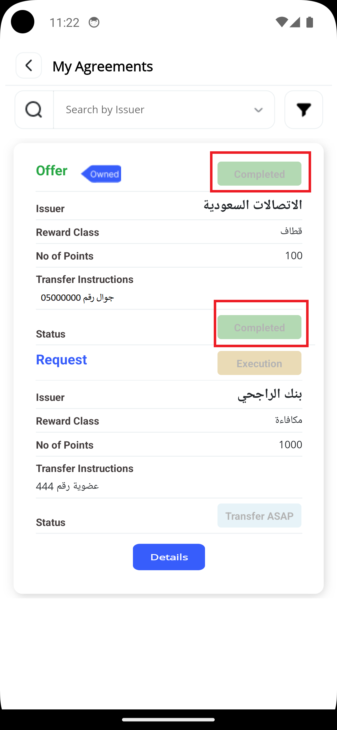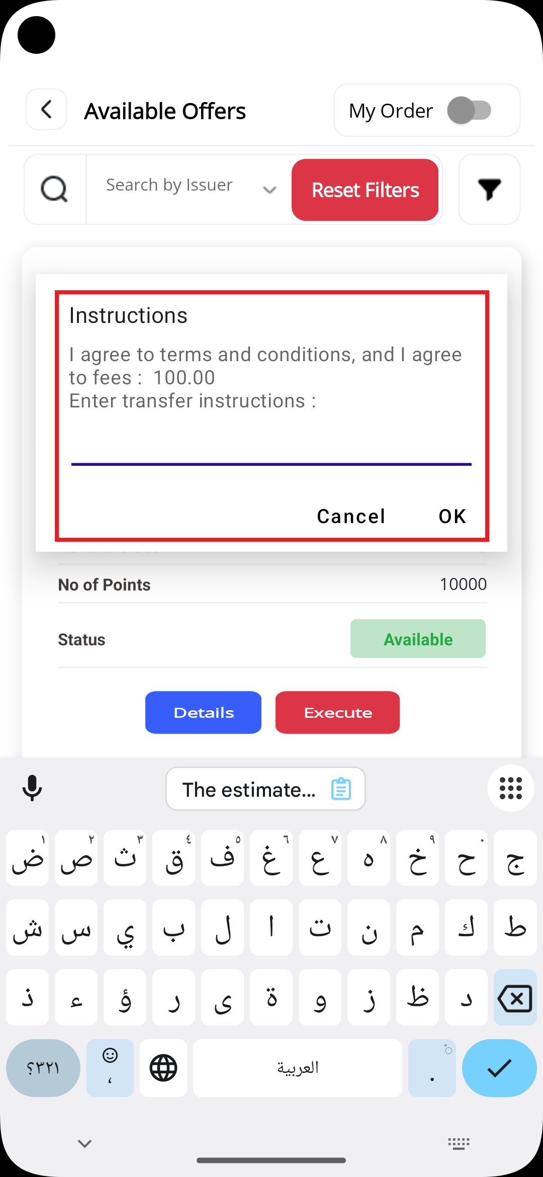 Note: Points should be transfered manually by you and the other party (Offer Owner) via Loyalty Program APP/Website - it is not done by Estbdlha App at this time