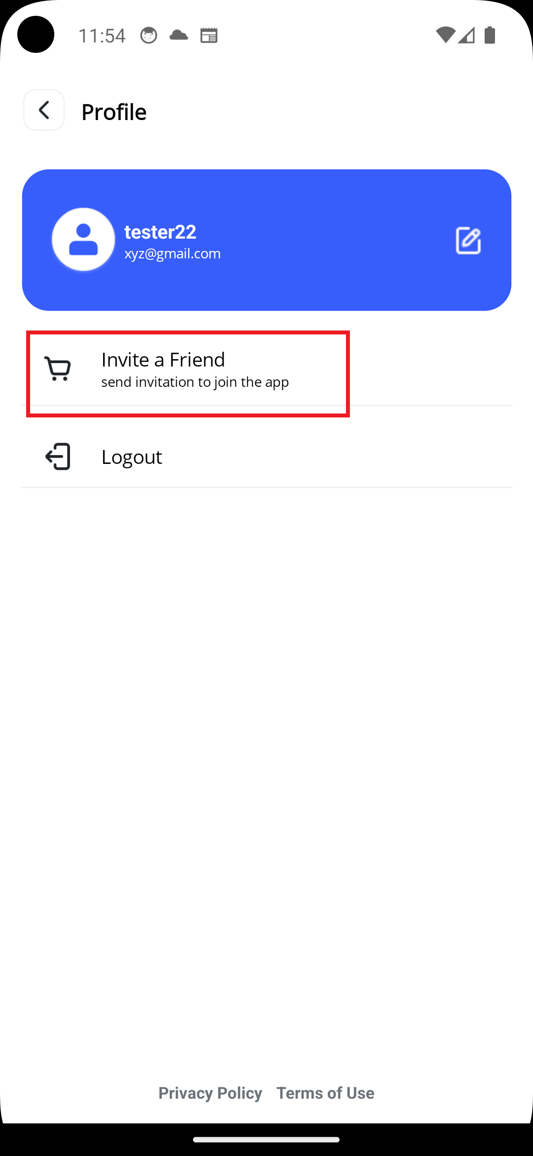 In Main Screen Select "Invite Friend" , or Go to Menu , click on Your Name in the Blue Box, then click "Invite a Friend"
